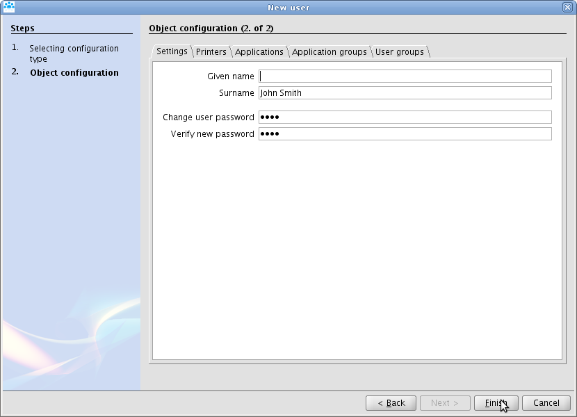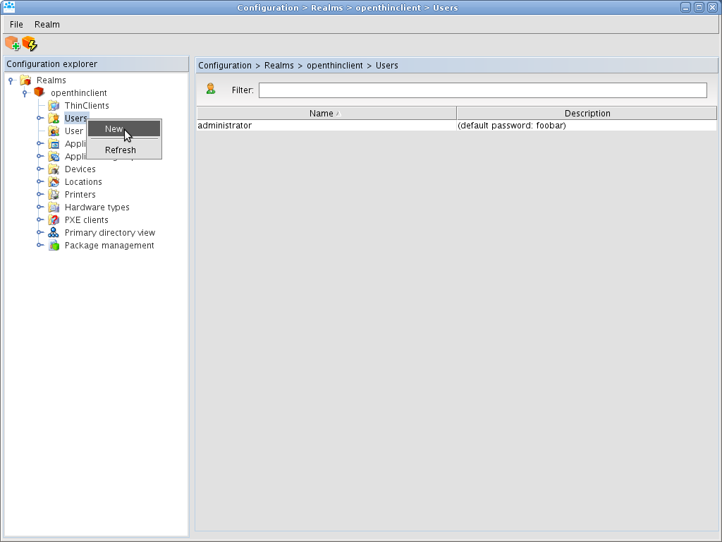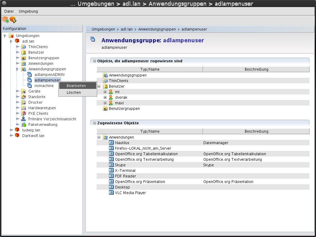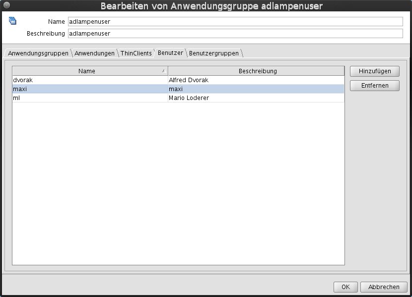 Wenn man sich jetzt einloggen würde, und dem Client selbst keine Programme zugeordnet sind (Standard), würde man sich in einem Kioskmodus befinden, wo man nichts anfangen kann. Um das zu ändern müssen wir den soeben angelegten User zu einer Gruppen hinzufügen.
