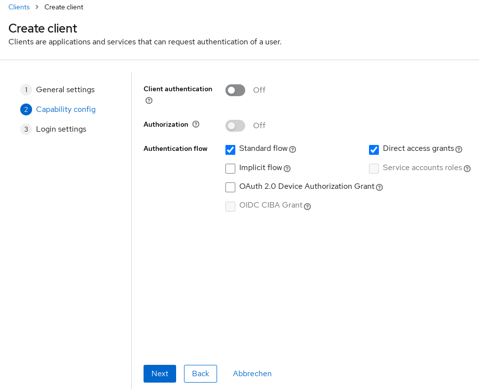 OpenID Client in Keycloak hinzufügen