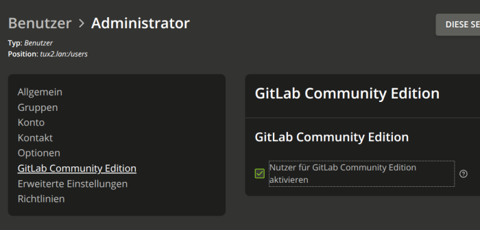 | Übersetzte Kurzbeschreibung | Nutzer für GitLab Community Edition aktivieren |