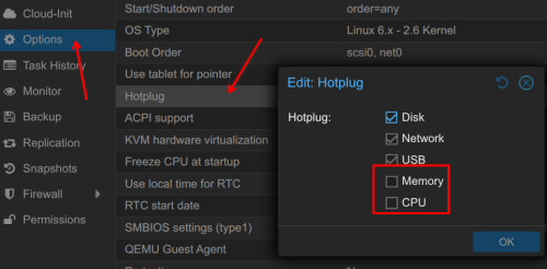 Unter Proxmox VE ist es recht einfach Linuxgästen Hotplug von Geräten beizubringen. Für CPU und Memory ist zusätzlich noch eine UDEV Regel erforderlich [11].